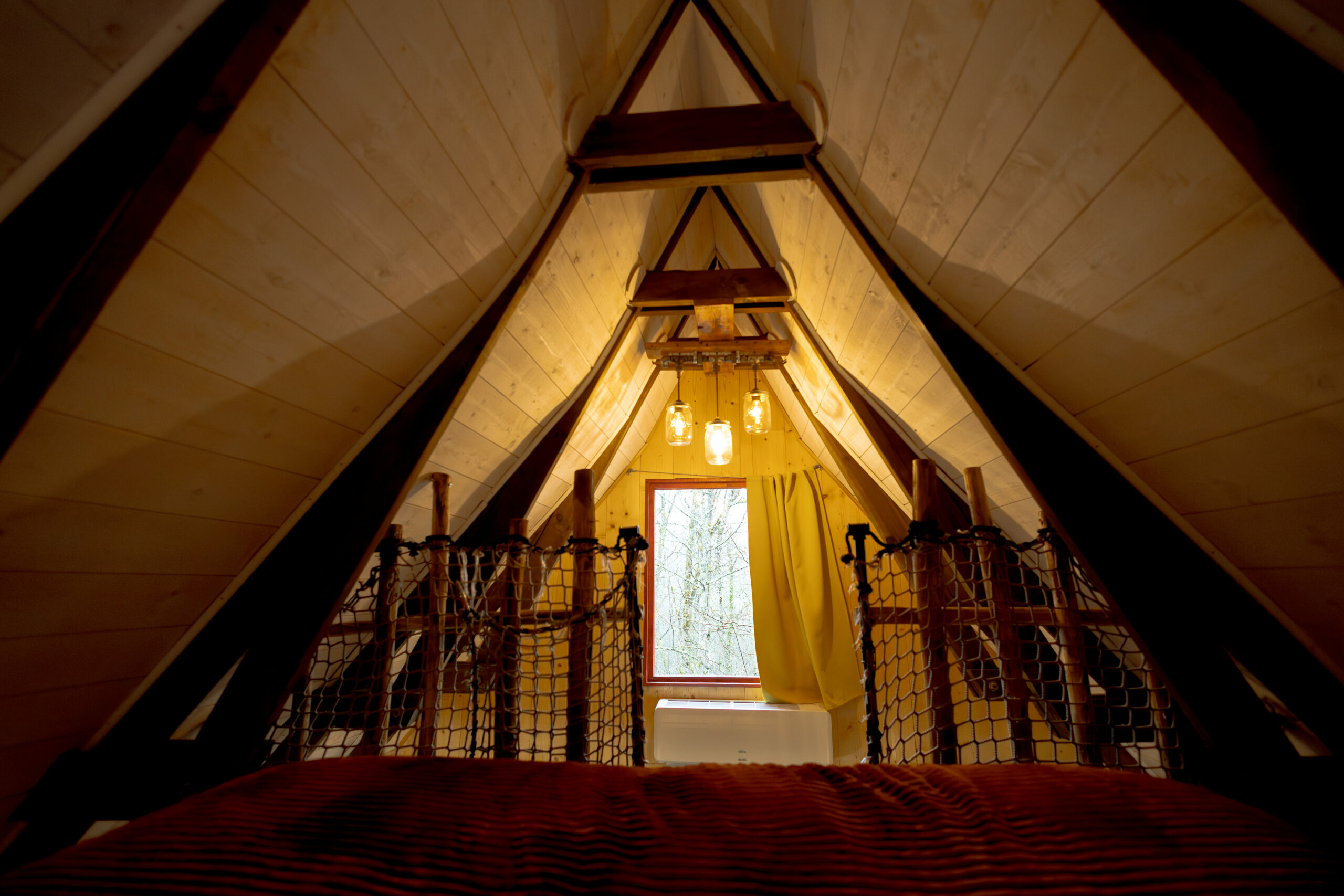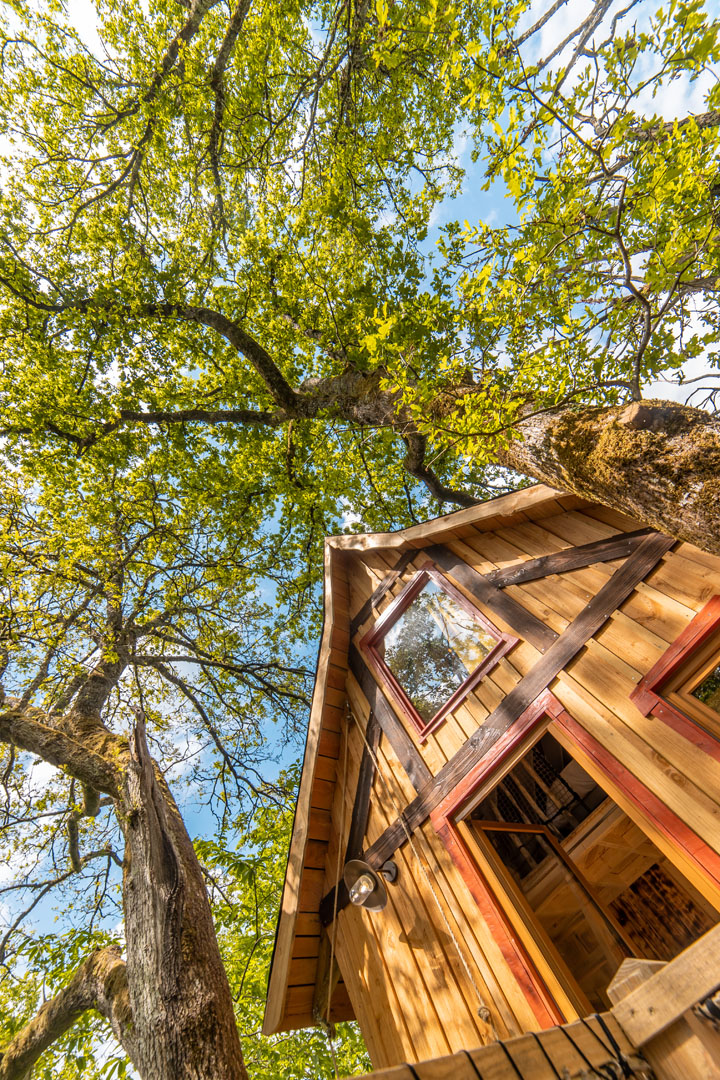 Je ne me sens pas toujours à ma place dans cette vie moderne. J’ai besoin de couleurs et de folie. Je suis une éternelle optimiste et à ce titre j’ai scrupuleusement choisi chacun des détails de nos cabanes. Dans celle-ci, une atmosphère revitalisante se fait pleinement ressentir. A plus de huit mètres du sol, vous serez emporté dans un univers en pleine nature. Vous y trouverez un décor coloré et vivant, inspirant la quiétude et l’insouciante.