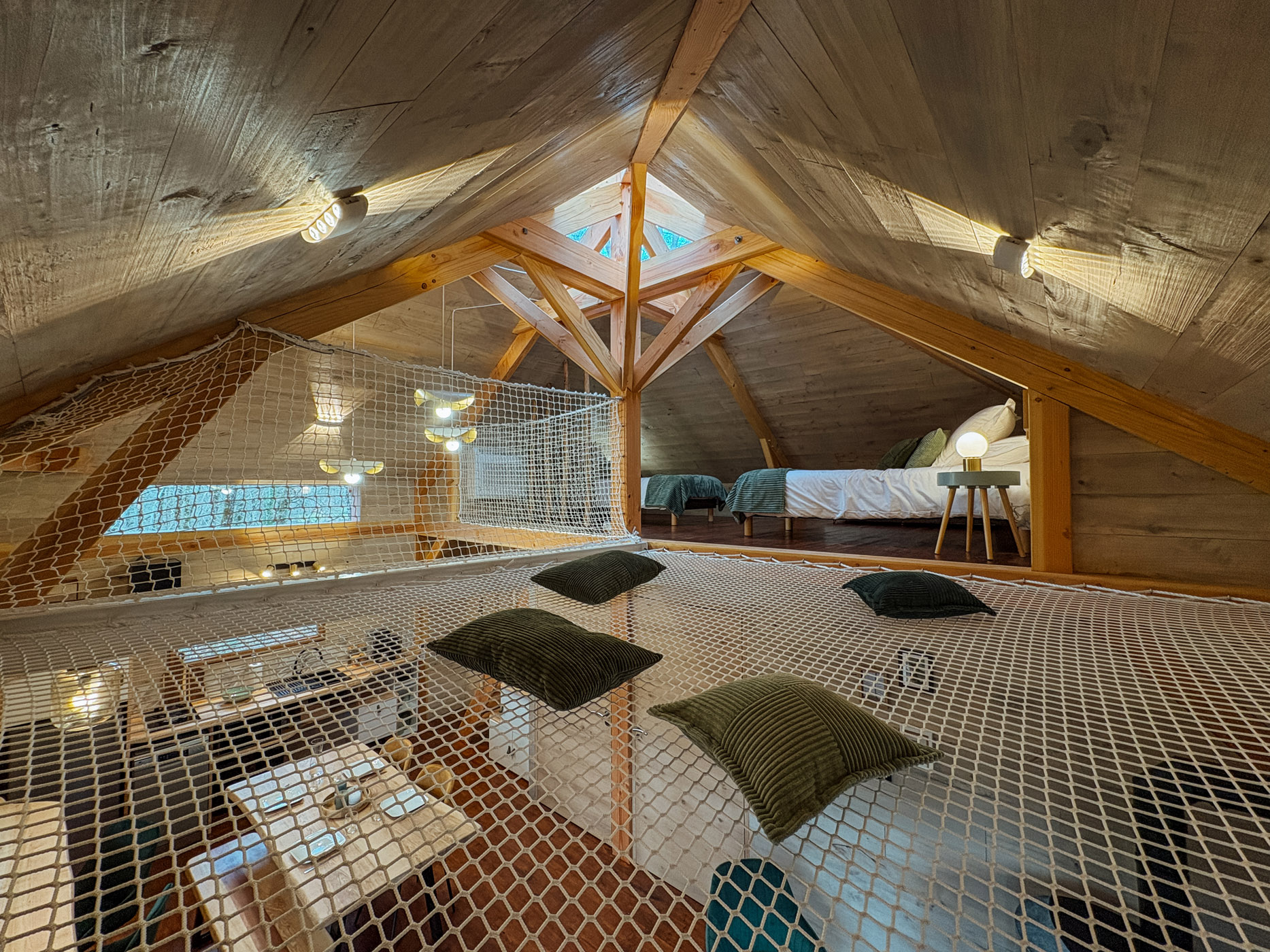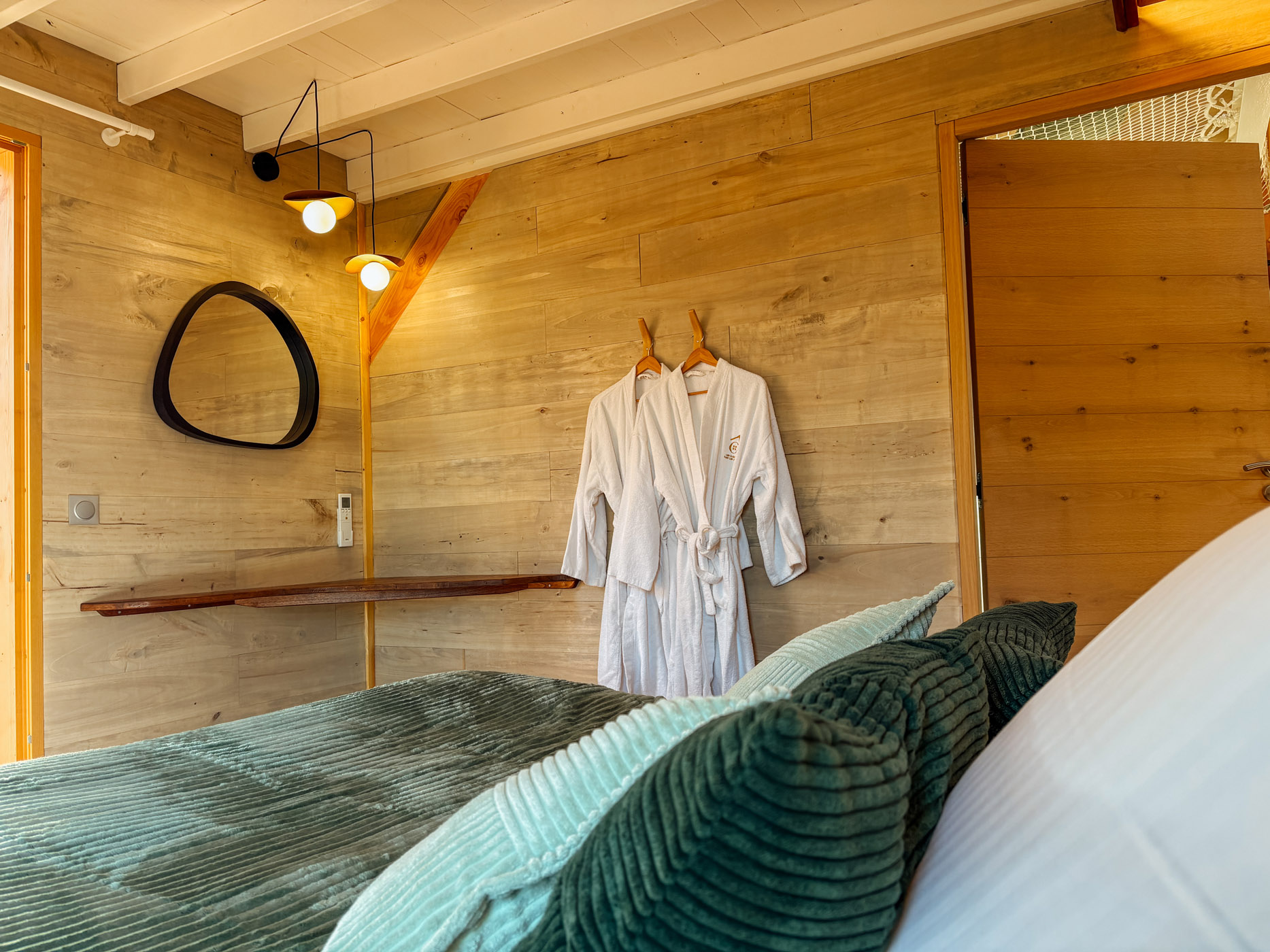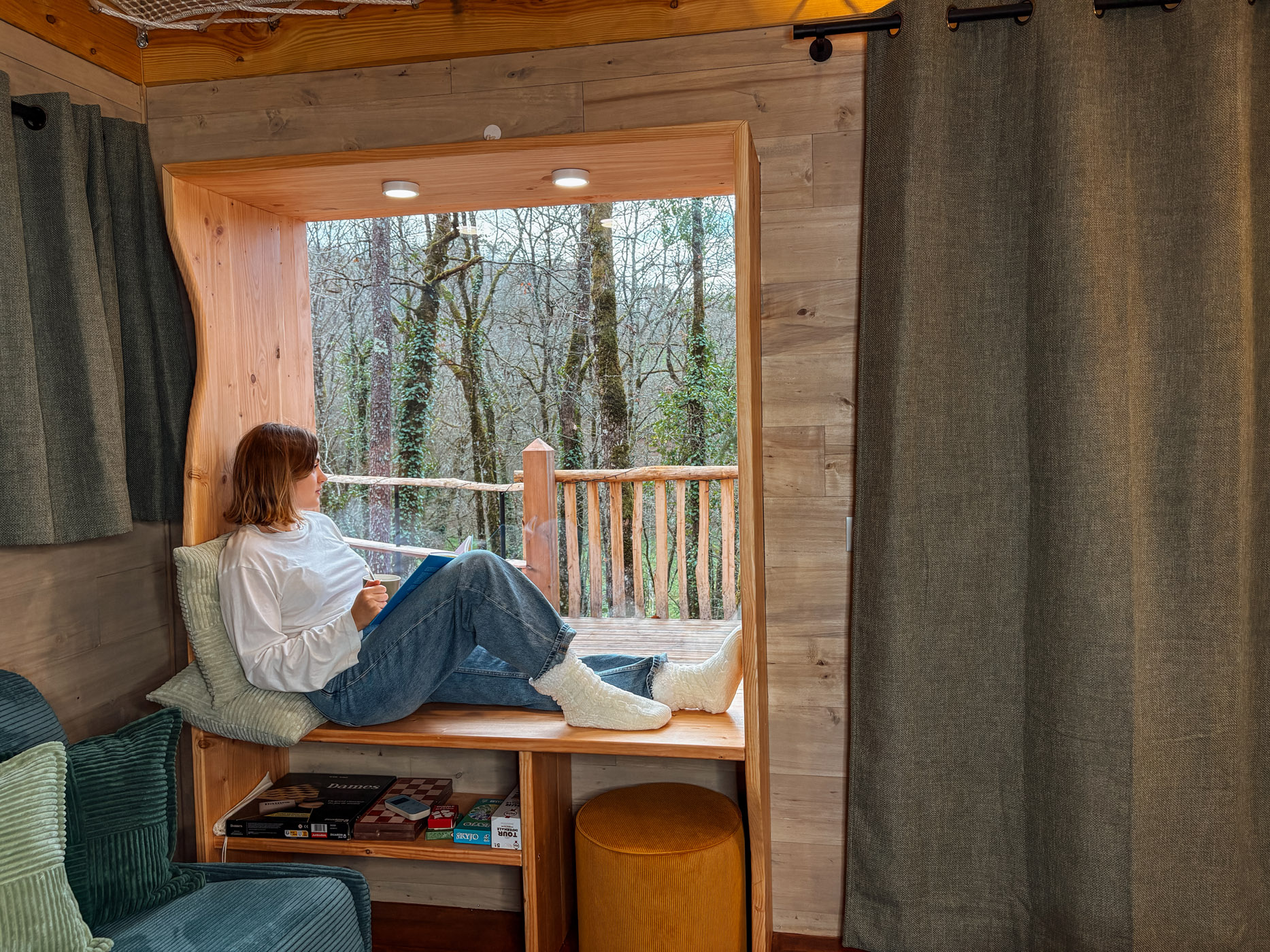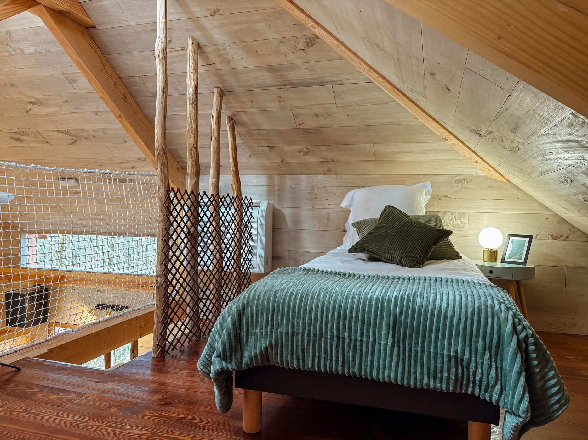 Les petits déjeuners, ainsi que les planches et les dîners vous sont servis dans un panier en bas de votre cabane. Il ne vous reste qu’à les hisser jusqu’en haut grâce à la poulie pour les déguster en toute intimité. Les boissons ne sont pas incluses mais elles sont en vente directe à la P’tite Boutique !