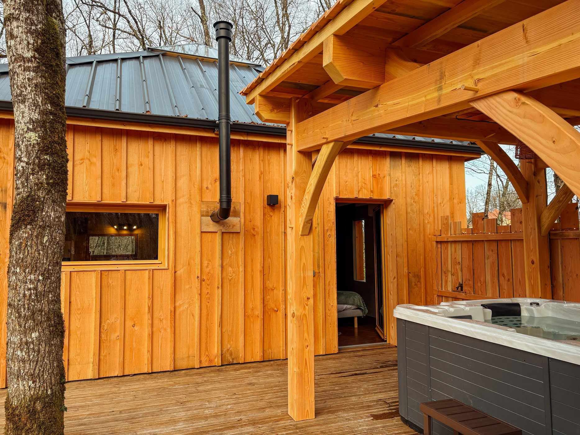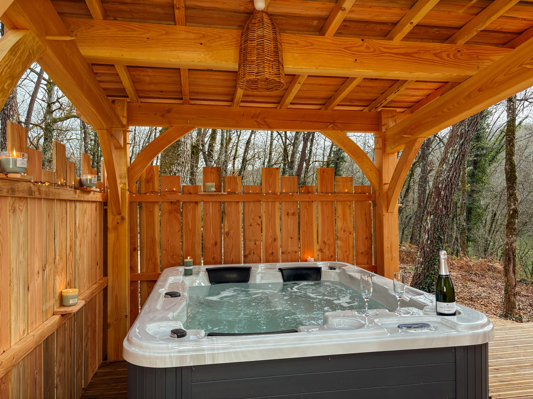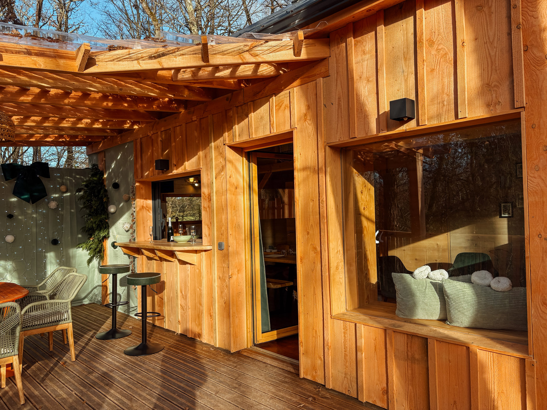 Inspirée des emblématiques cabanes sur pilotis du Bassin d’Arcachon, la Cabane Tchanquée vous accueille pour une parenthèse hors du temps, dans un écrin de verdure. Spacieuse et chaleureuse, elle peut héberger jusqu’à 6 personnes, parfaite pour un séjour entre amis ou en famille. Pensée pour allier confort et bien-être, elle dispose d’un jacuzzi privatif en extérieur et d’un sauna (à partir de mi-février), pour profiter pleinement de chaque moment, quelle que soit la saison.